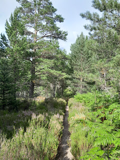 Then down trails to the ski centre, before taking a tiny path down a valley into the Glenmore Nature Reserve, following a river through magical pine forests carpeted with purple heather and ferns.